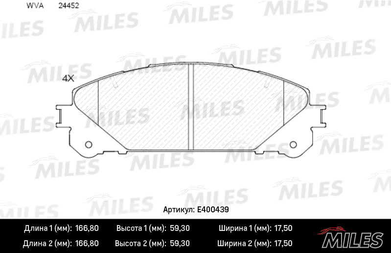 Колодки тормозные передние (без датчика) (Смесь Low-Metallic) LEXUS RX 09-/TOYOTA HIGHLANDER 07- (TRW GDB3484) E400439 MILES