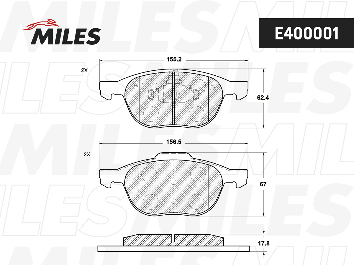 Колодки тормозные передние (без датчика) (Смесь Low-Metallic) FORD FOCUS II 04-/III 10-/MAZDA 3 03-/ VOLVO S40 04- (TRW GDB1583) E400001 MILES
