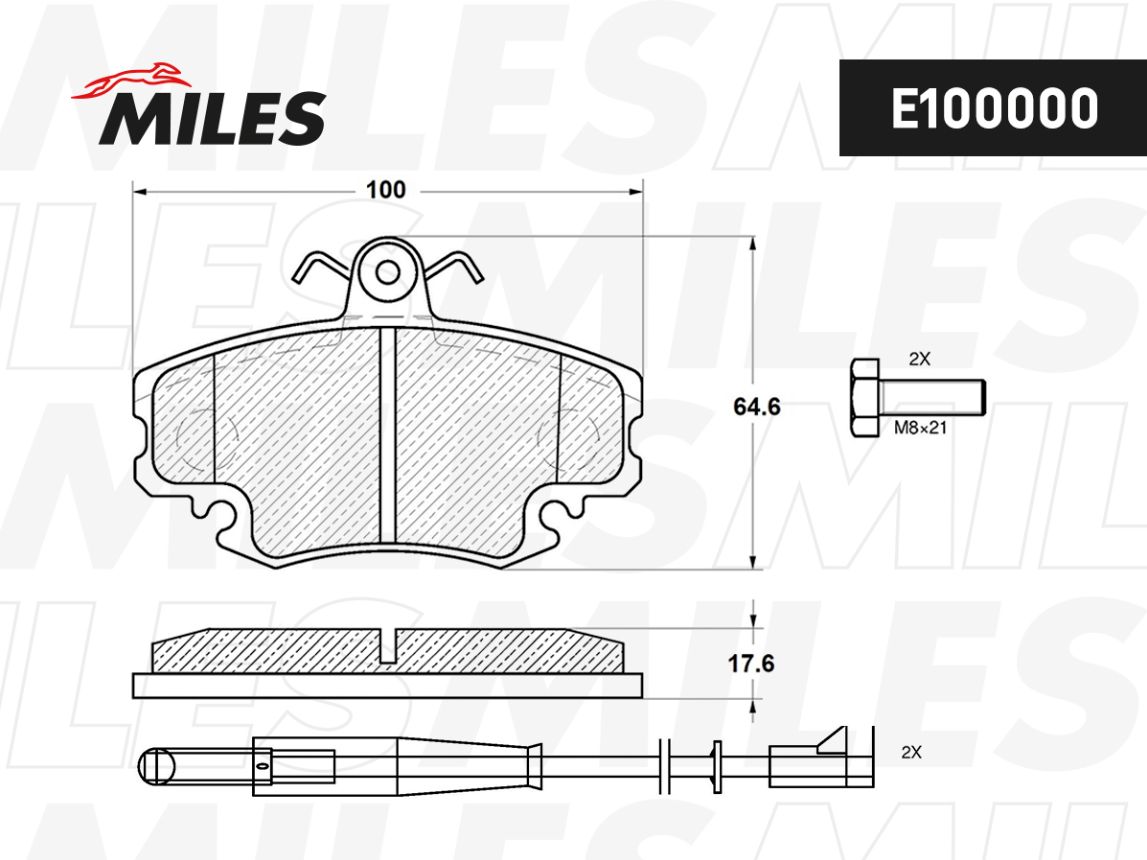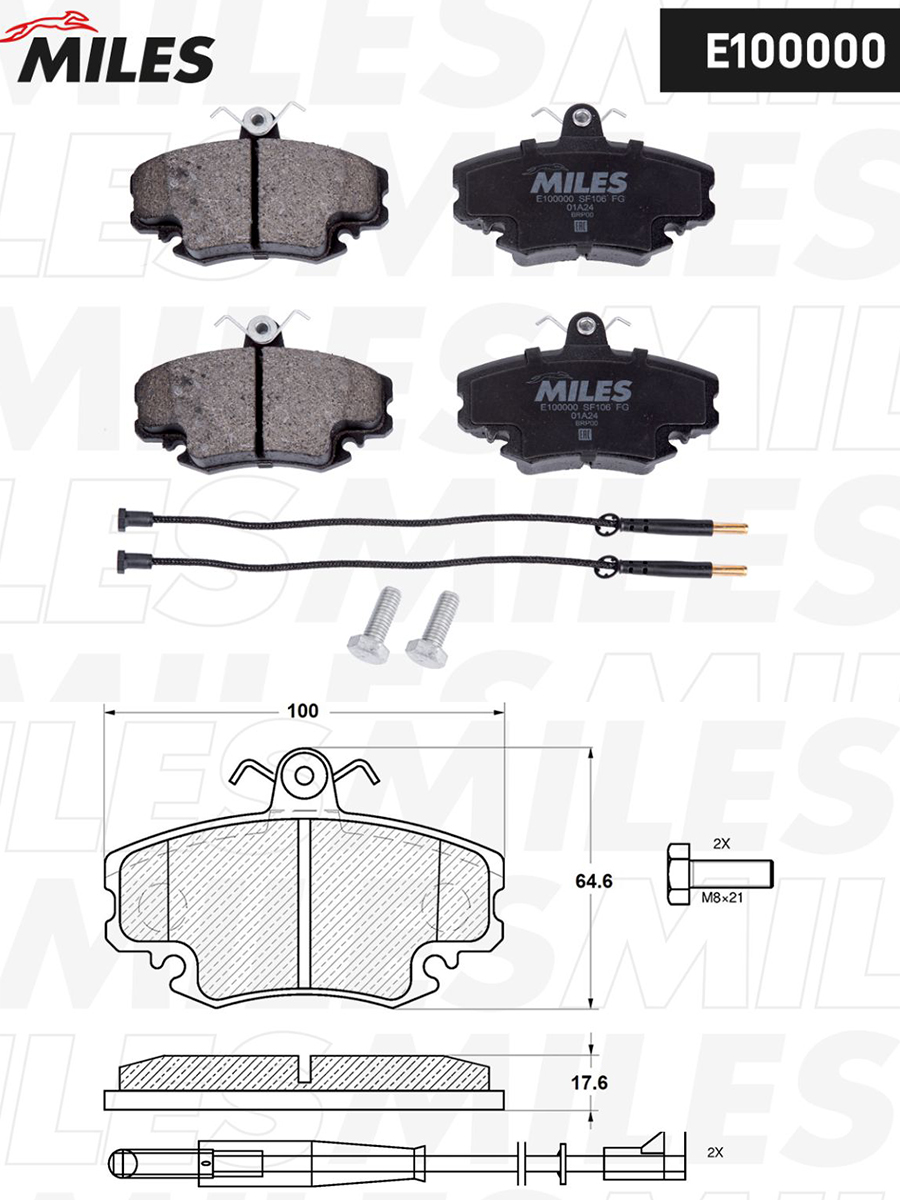 Колодки тормозные передние (с датчиком) MILES E100000