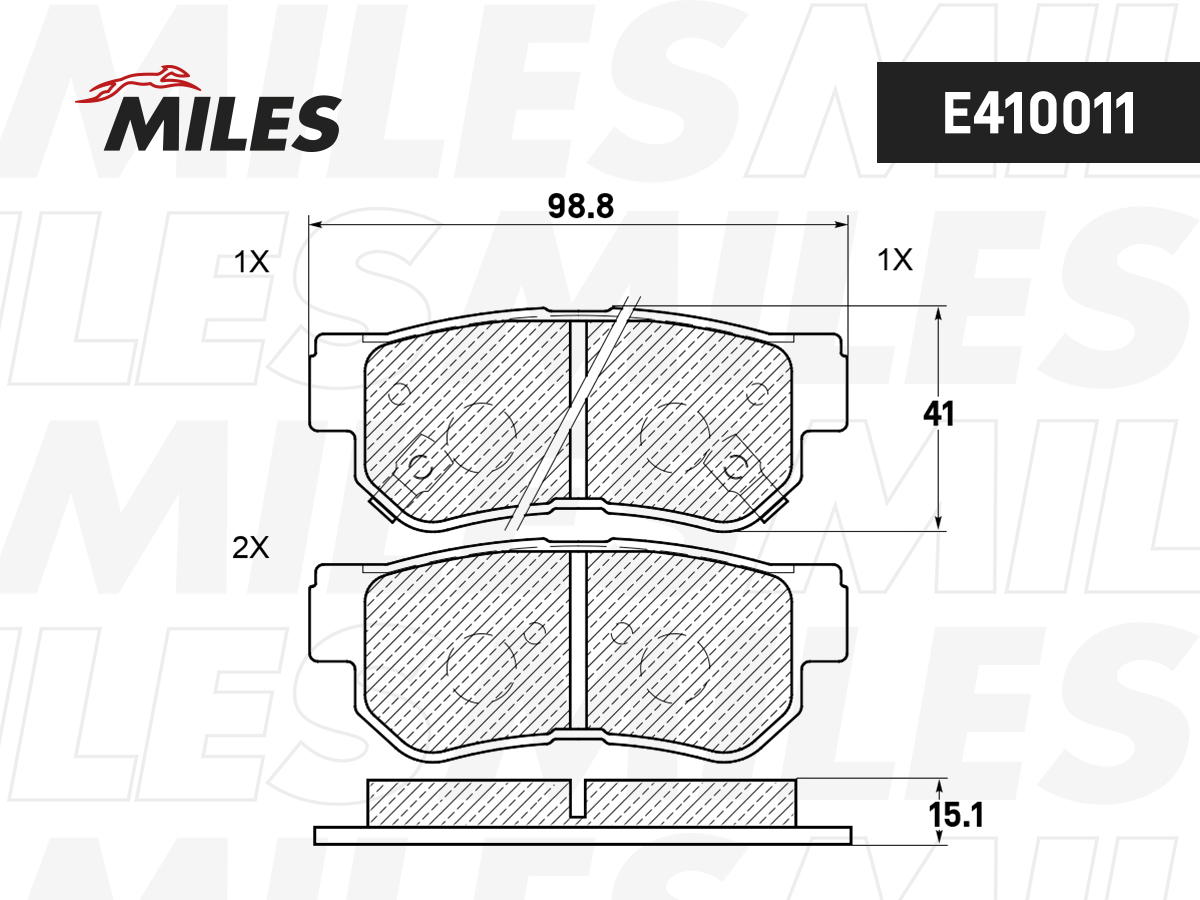 Колодки тормозные задние (без датчика) (Смесь Low-Metallic) (HYUNDAI ELANTRA (XD, HD), GETZ, SANTA FE, SONATA IV-V) (TRW GDB3284) E410011 MILES