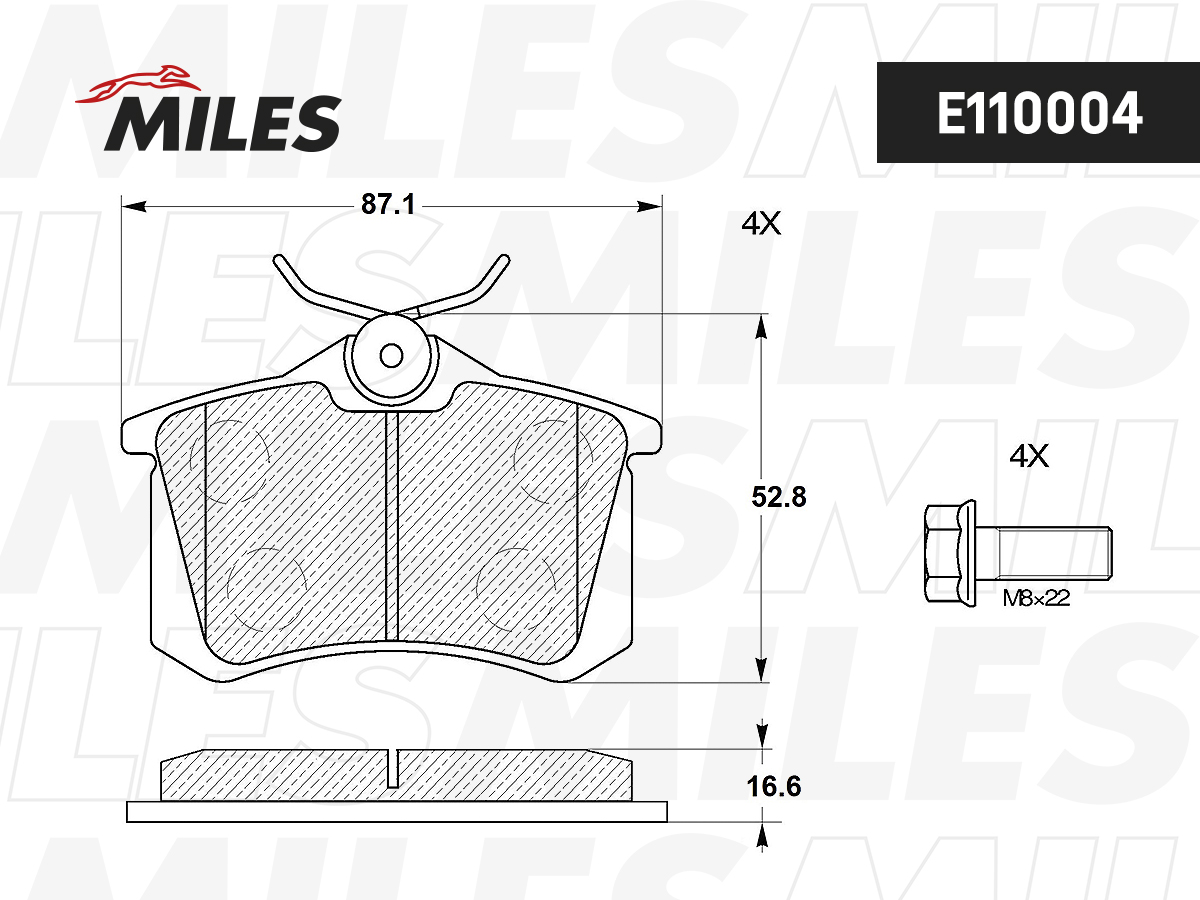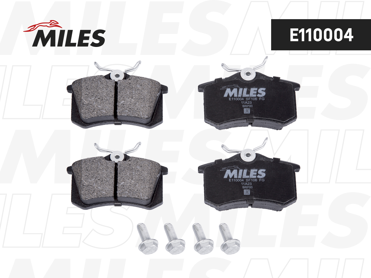 Колодки тормозные задние (без датчика + болты) (Смесь Semi-Metallic) AUDI A4 (B5, B6) A6 (C5), CITROEN C4, PEUGEOT 307, 308 (TRW GDB1330) E110004 MILES