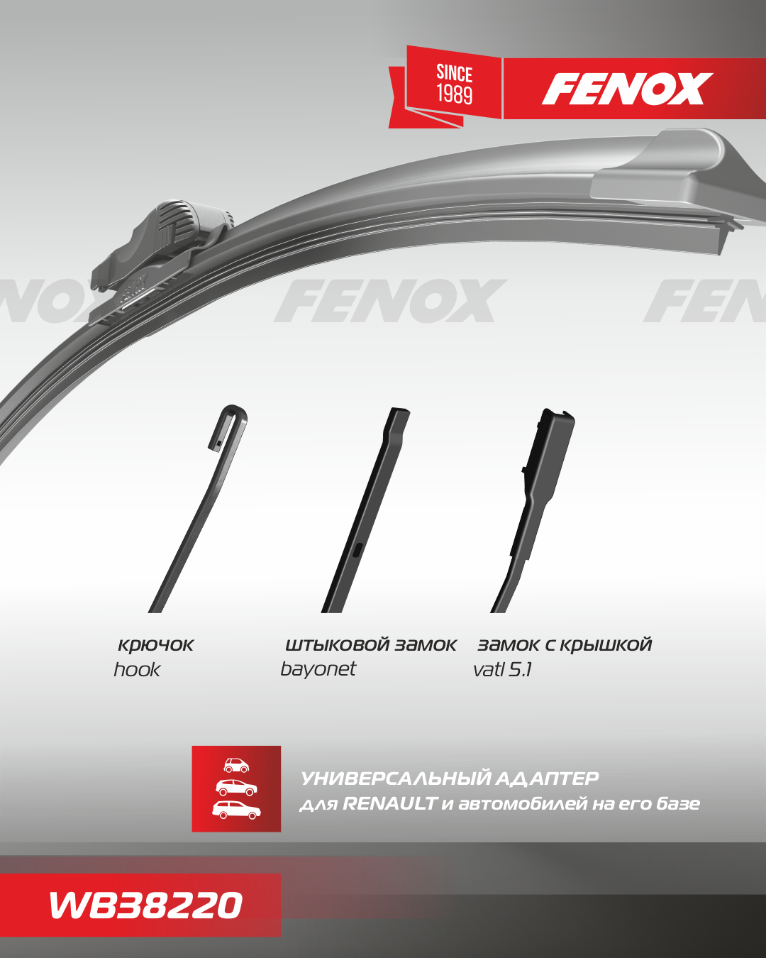 Щетка стеклоочистителя бескаркасная 380мм FENOX WB38220
